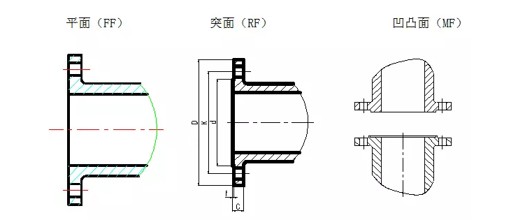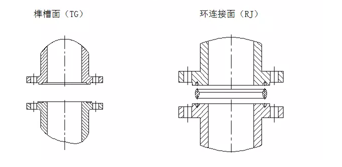 法蘭密封面主要是防止管道中介質向外泄漏,密封面形式主要有平面(FF)、突面(RF)、凹凸面(MF)、榫槽面(TG)、環連接面(RJ)等幾種。