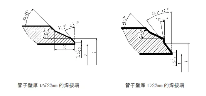GB/T 12224、API600、ASME B 16.34等標準對焊接坡口做出了規定,其焊接坡口形式如下:
