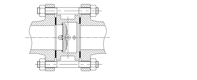 對夾連接指閥門兩側的管道法蘭,通過螺栓夾緊使閥門與管道系統相邊的一種連接方式。示圖如下: