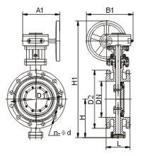 硬密封法蘭蝶閥D343H-16C-700--特點: 1、硬密封法蘭蝶閥D343H-16C-700結構獨特、型小輕便、操作靈活、省力、方便; 2、密封可靠,可達到氣密封無泄漏; 3、流量特性趨于直線調節性有最佳; 4、采用三偏心原理,使密封面近似零靡損延長了閥門的使用壽命; 5、應用范圍廣。如:可用于水、蒸氣、油品、空氣、煤氣等介質; 6、適用不同溫度及6.4MPa以下的壓力等級,耐腐蝕等各種介質管線。 D343H 多層次硬密封蝶閥--主要連接及外形尺寸: