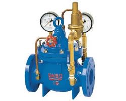 200X不銹鋼減壓閥由主閥、導閥、針閥、球閥、微型過濾器和壓力表組成水力控制接管系統(tǒng)。使用時,當調(diào)定出口壓力后,能自動保持穩(wěn)定出口壓力。本產(chǎn)品利用導閥自力控制,不需要其它裝置和能源,保養(yǎng)簡便,壓力控制準確度高,受進口壓力和流量影響小,減壓穩(wěn)壓可靠。廣泛用于高層建筑、生活區(qū)等供水管網(wǎng)系統(tǒng)及城市供水工程。 當閥門從進口端給水時,水流過針閥進入主閥控制室,出口壓力通過導管作用到導閥上。當出口壓力高于導閥彈簧設定值時,導閥關閉。控制室停止排水,此時主閥控制室內(nèi)壓力升高并關閉主閥,出口壓力不再升高。 當閥門出口壓力降到導閥彈簧設定壓力時,導閥開啟,控制室向下游排水。由于導閥系統(tǒng)排水量大于針閥的進水量,主閥控制室壓力下降。進口壓力使主閥開啟。在穩(wěn)定狀態(tài)下,控制室進水、排水相同,主閥開度不變,出口壓力穩(wěn)定。 調(diào)節(jié)導閥彈簧即可設定出口壓力。 三、200X不銹鋼 減壓閥--主要技術參數(shù):