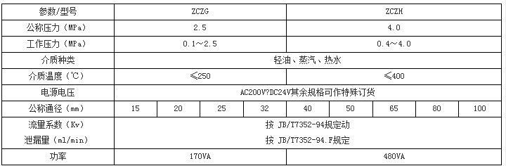 三、ZCZG-16C-100_高溫蒸汽電磁閥--技術參數: