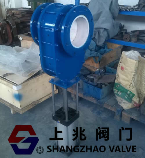 Z644T 耐磨陶瓷雙閘板閥當氣源從上進氣口通入時,閥桿帶動閥板向下運動,閥門關閉。當氣源從下進氣口通入時話,閥桿帶動閥板向上運動,閥門開啟。閥板與閥座之間加載彈簧,彈簧彈力始終使閥板壓向閥座保證閥門的密封性,又容許閥板在垂直上下方向移動,這有助于補償閥門零件的熱脹冷縮,并能克服任何背壓變化對密封的影響與防止顆粒介質進入兩密封面之間。在啟閉過程中,閥板能產生自轉,使得密封面之間產生研磨、拋光作用,而且由于閥體對通道偏心,在開啟排卸物料時,會產生渦流,形成的物料旋渦會自行清掃閥門內腔。此閥門為雙閘板單密封,獨特的下閥體斜面設計,保證閥門內腔不積灰。所有的這些特點,使得這種閥門具有超長的使用壽命,為您的系統安全運行提供了可靠的保證。