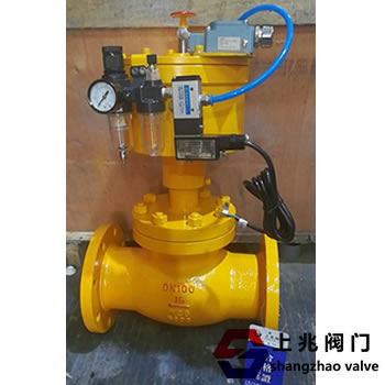 本閥氣源入口按裝一只二位三通電磁閥,利用遠程電器控制臺控制閥門開關。