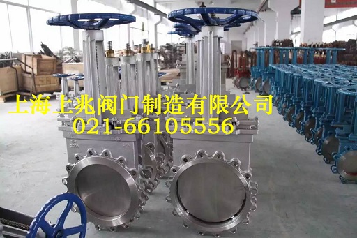 刀閘閥又稱刀型閘閥、刀門閘閥、漿液閥、泥漿閥,它的啟閉件是閘板,閘板的運動方向與流體方向相垂直,靠可以切割纖維材料的刀刃形閘板來切斷介質,閘板有兩個密封面,最常用的模式閘板閥的兩個密封面形成楔形、楔形角隨閥門參數而異,通常為50,楔式刀型閘閥的閘板可以做成一個整體,叫做剛性閘板;也可以做成能產生微量變形的閘板,以改善其工藝性,彌補密封面角度在加工過程中產生的偏差,這種閘板叫做彈性閘板。閥體實際上不存在腔室,閘板在側面導向槽內升降,并由底部的凸耳緊壓在閥座上,如需達到較高的介質密封性時,可選用O形密封閥座實現雙向密封。刀閘閥具有較小的安裝空間,工作壓力低,不易堆積雜物,價格較低。上兆閥門刀閘閥適用于漿液、污水、粉塵等介質的管路上做截流使用。