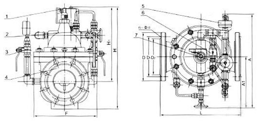 700X多功能水泵控制閥由主閥、電磁導閥、針閥、球閥、單向閥、行程開關、微形過濾器和壓力表組成水力控制接管系統。水泵需停止工作時,先由進口壓使主閥關閉90%后,水泵停止運轉。剩余10%由回水關閉。可防止水錘現象發生。本產品利用電磁導閥控制,不需要其它裝置和能源。節約能源,保養簡便,停泵平穩。電磁閥可采用交流電220V或直流電24V。 二、700X多功能水泵控制閥--工作原理